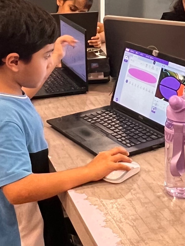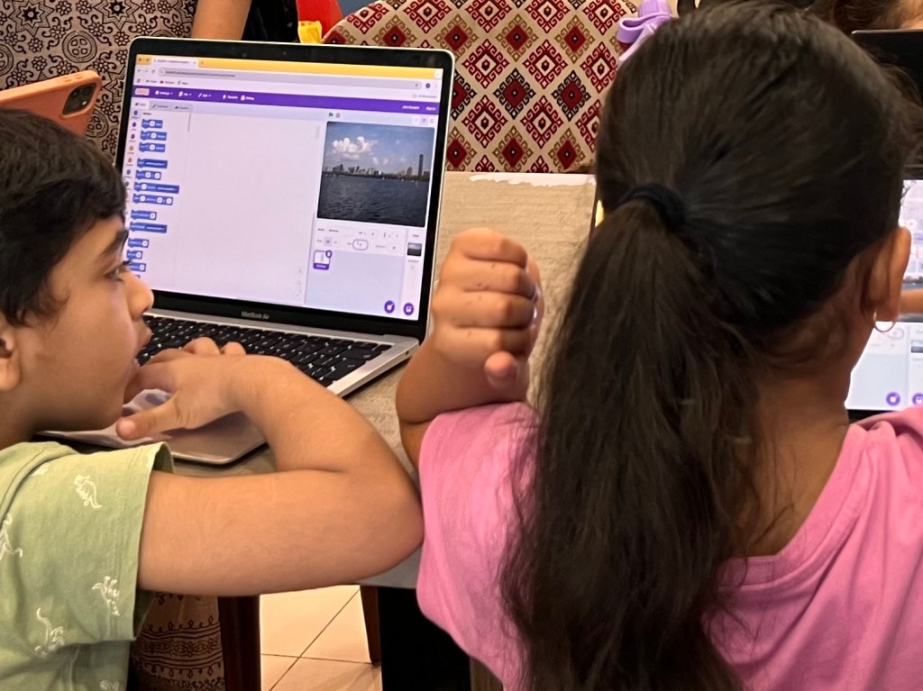 We use Scratch, which is a beginner level visual programming language designed for children so they can learn how to code in a simple and engaging way. I usually help them understand how it works and guide them through the steps. After that, we move on to basic things like lighting a bulb or connecting a simple circuit.