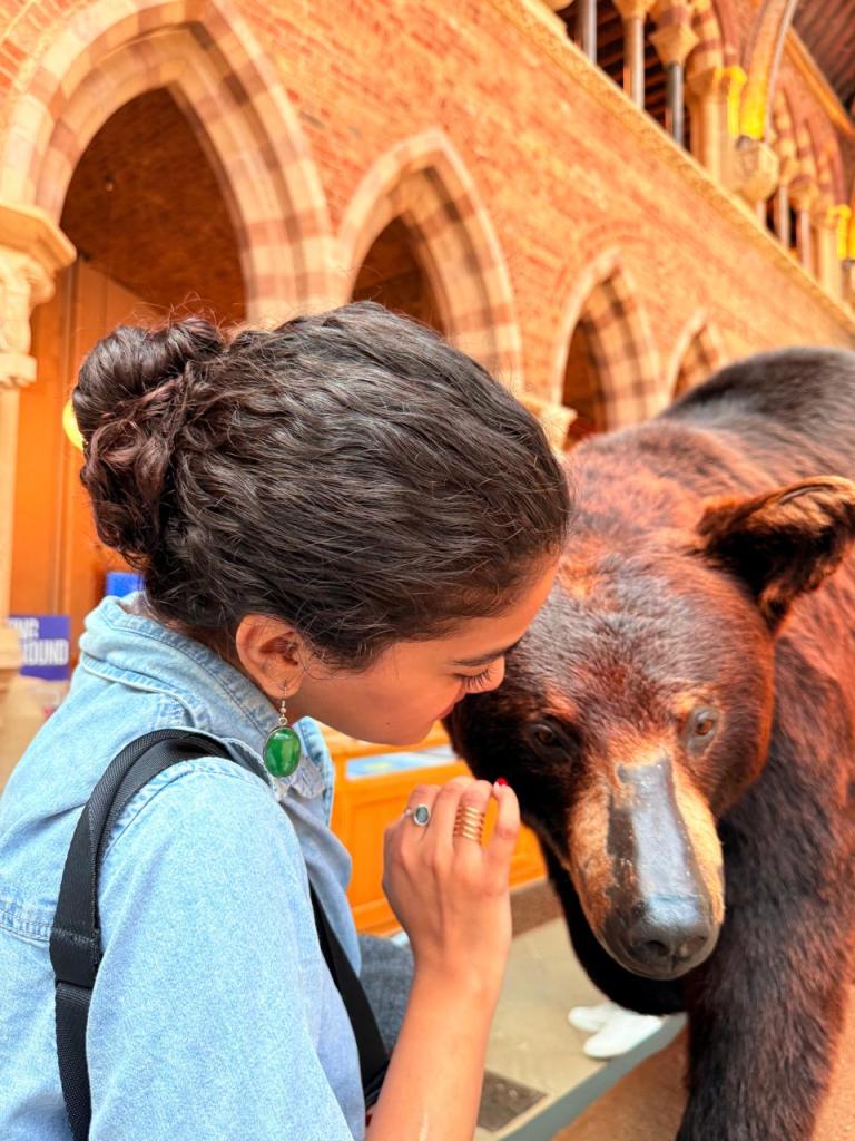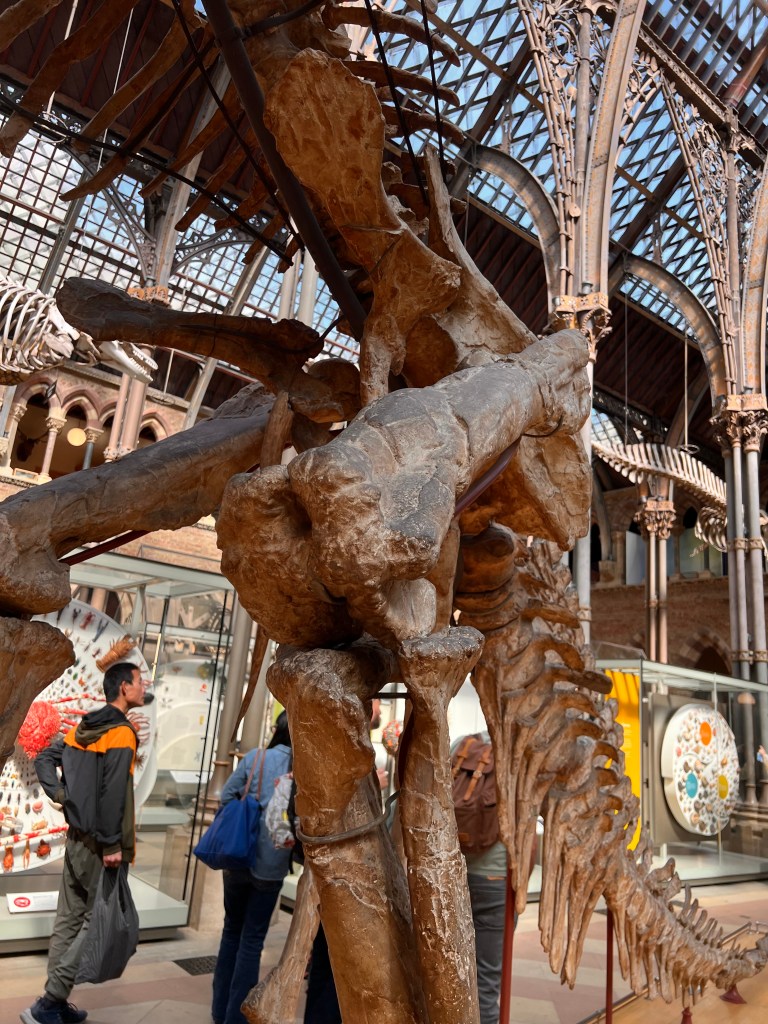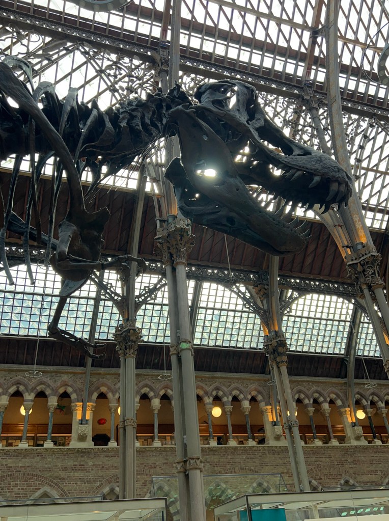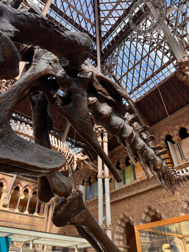 As I entered the Natural History Museum in Oxford, it was spectacular to see the dinosaurs. Most of them were old molds, probably made to preserve the shapes of species from T. rex to ostriches and others. The actual dinosaur fossils were kept safely in glass. While walking through the exhibits, I noticed people touching some of the rocks and fossils, and at first, I thought you weren’t supposed to. But then I saw it was allowed to touch them gently. I went back and touched each one, just to feel them – to imagine holding something so ancient, from millions or even billions of years ago, here in 2025.