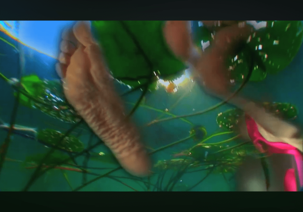 In Sea Lily White Days (2001), the body is shown underwater, floating and slow. Everything is soft and dream-like. Light moves gently. There’s no beginning or end