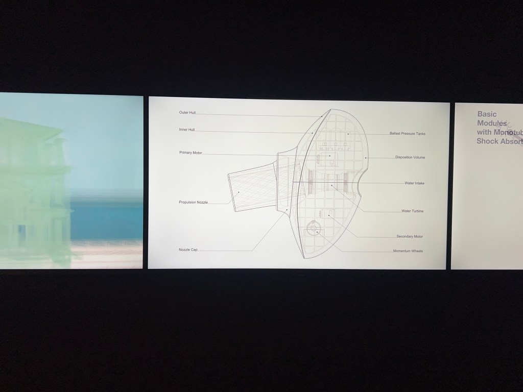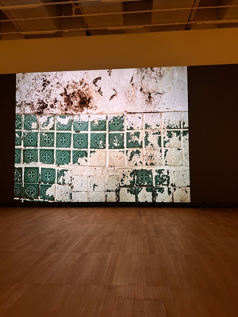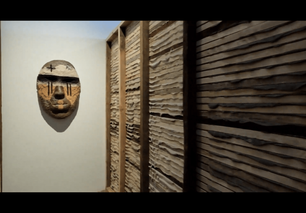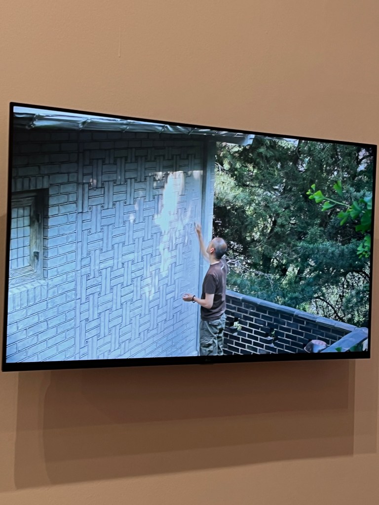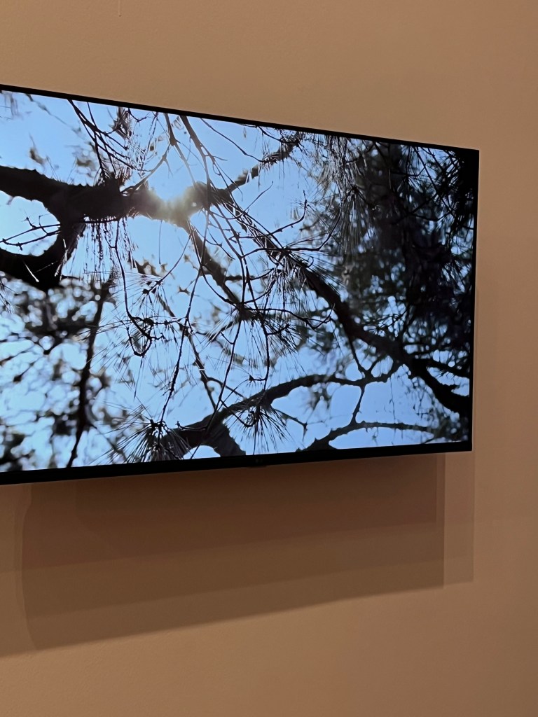 The installation uses painting, sculpture, and video, all together. Nothing feels separate or out of place. The video blends into the room. It isn’t just there to be watched, it helps create the atmosphere.