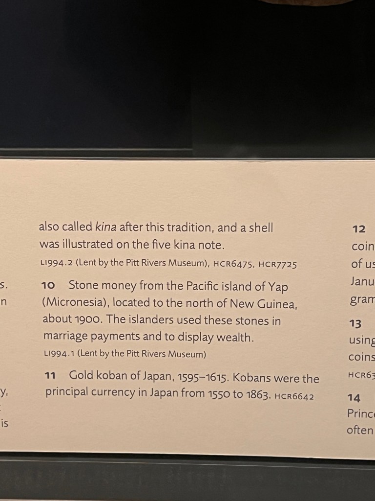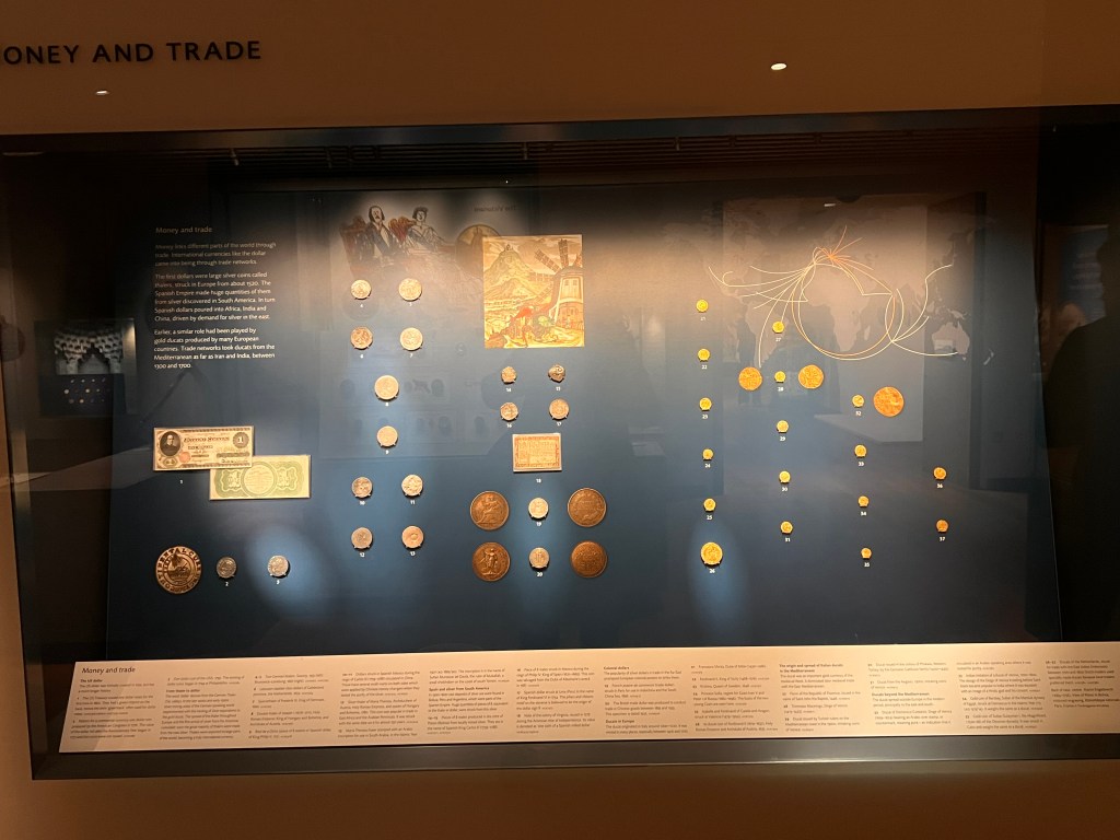 I’ve also been collecting coins since I was a child, so this section felt personal. Today I opened my coin box and found a five-rupee coin I don’t see anymore – coins in Pakistan have lost most of their value because of the economy. Seeing all of this together, from shells and spades to modern coins, really made me think about how money has evolved and the role it plays in shaping our world.