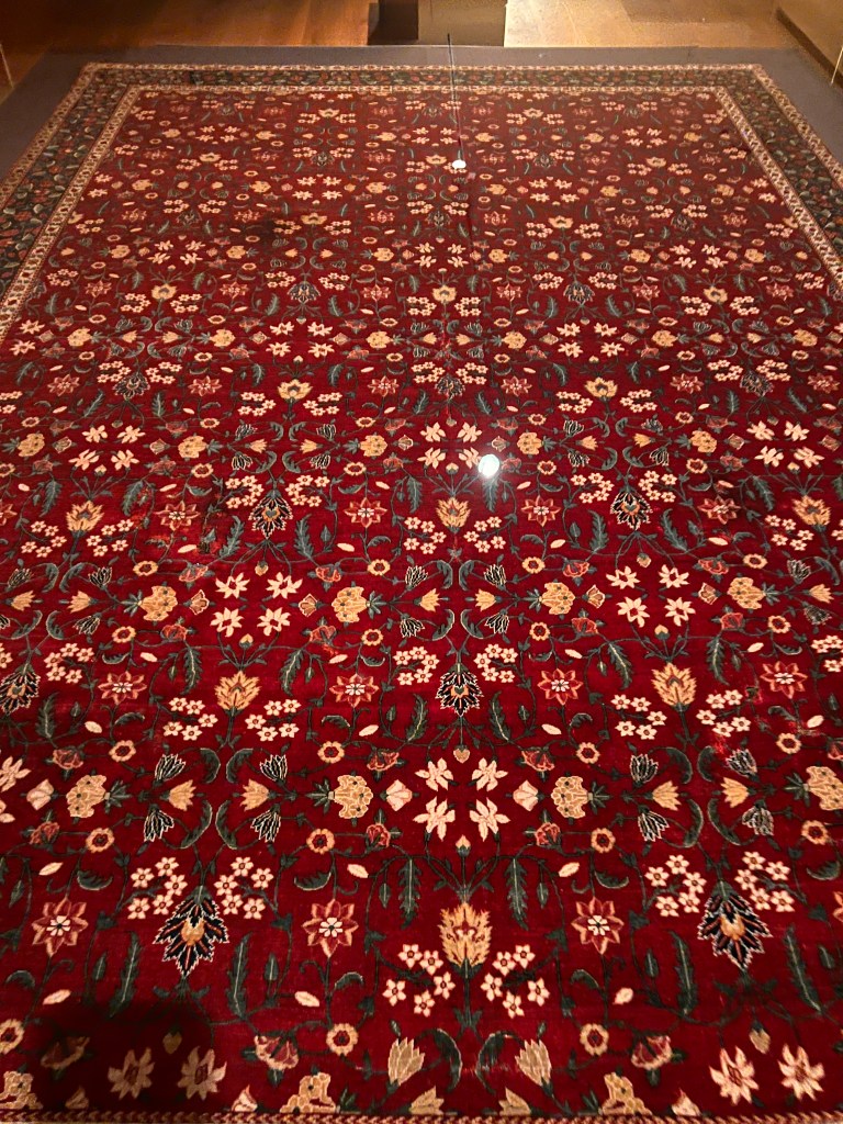 One critique I have is how the museum labels it. Everywhere it refers to “India,” without acknowledging the subcontinent, which feels misleading historically and politically. Even when Lahore is mentioned in trade-route explanations, it’s conflated with Kashmir, which should not be the case. Later, when I asked another staff member about its origin, I mentioned Lahore, and she said “Lahore or Agra.” Agra is not listed anywhere in the official description. This creates a third possible origin and raises questions: either the description was not researched properly, has not been updated or there is a deliberate choice in how the carpet’s provenance is represented.