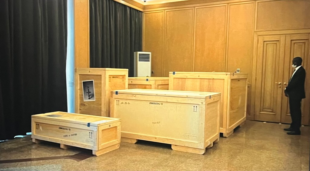 The film follows the return of 26 royal treasures of the Kingdom of Dahomey (present-day Benin), taken by French colonizers in the 19th century and kept in Paris for more than 130 years before finally being sent back in 2021. Among them is Object 26, a human-sized wooden statue of King Ghezo. In the film, this statue is given a literal voice. Through its narration, we hear the journey of an object that was once alive in ritual, in worship, in cultural continuity – but was reduced to a lifeless exhibit behind glass.