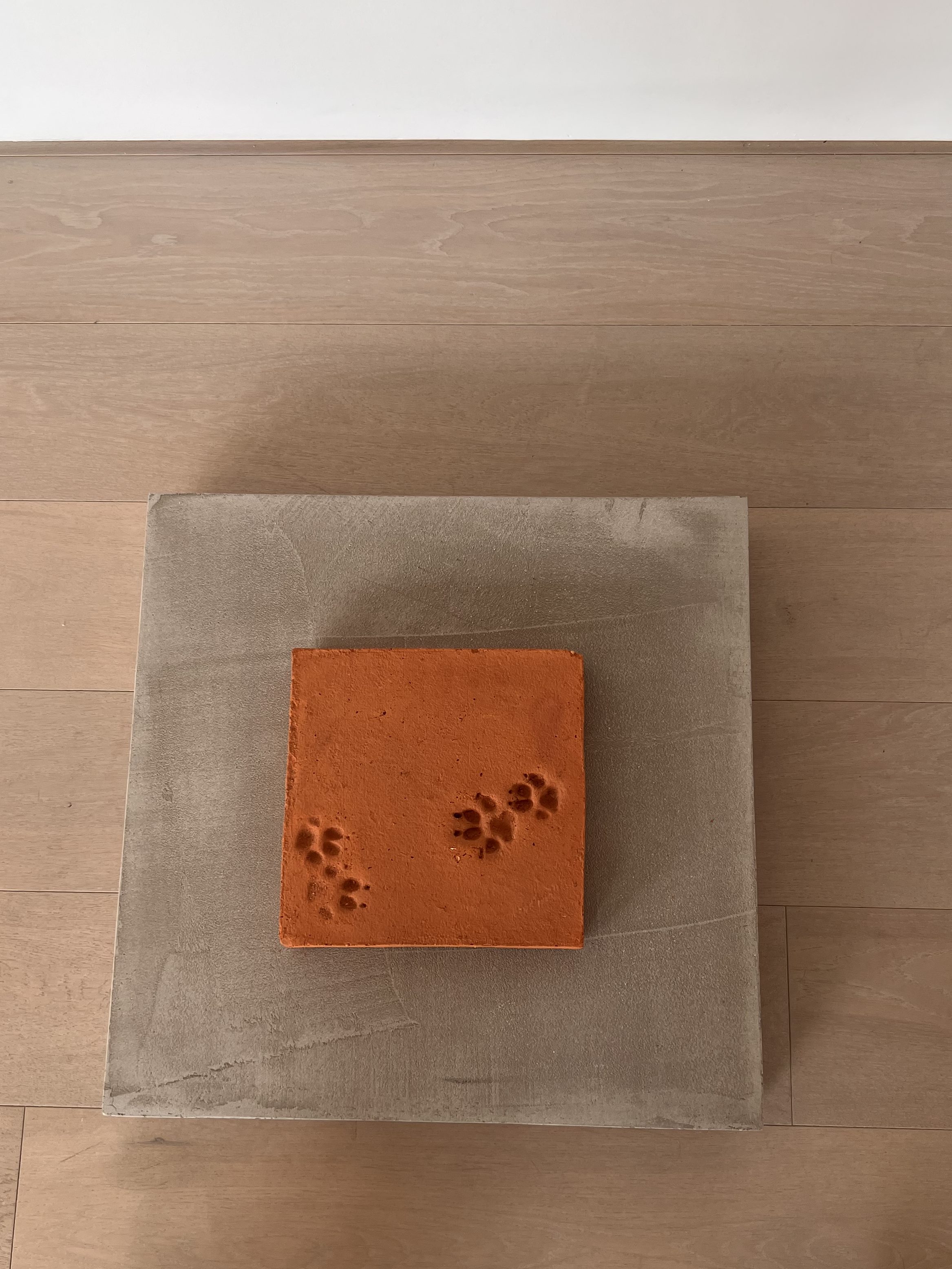 This single terracotta tile sits on the floor, imprinted with a dog’s paw prints. It’s simple, yet it leaves a strong impression, though the dog is not there, but its presence through the traces is left behind. Like Giacometti’s. The Cat, which holds the essence of an animal in a minimal, almost ghostly way, Hatoum’s tile evokes life through absence, of what once was and is no longer there.